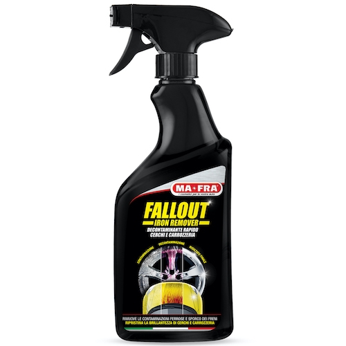 Fallout Iron Remover รจ il decontaminante cerchi e carrozzeria che, grazie alla sua innovativa formula, converte e dissolve chimicamente i residui ferrosi penetrati nella vernice, creando una soluzione violacea facilmente risciacquabile in tutta sicurezza.
